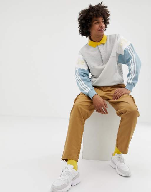 adidas originals rugby sweatshirt DV3147 white grey yellow Mens