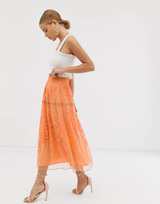 ASOS DESIGN occasion midi skirt with floral embroidery