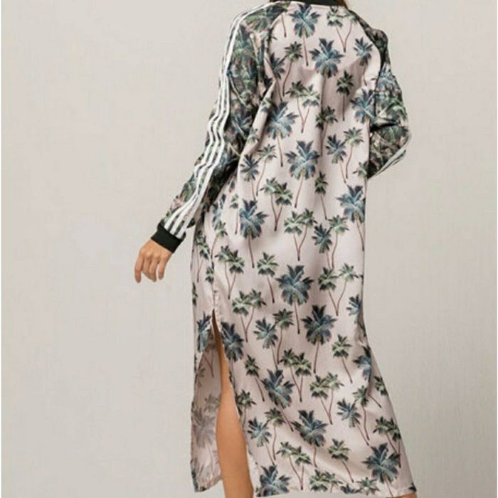 Adidas Pink Tropical Palm Trees Zip Front Long jacket dress XS