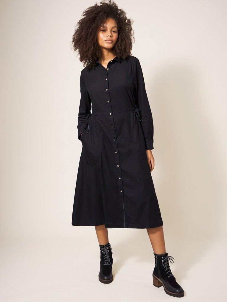 Long sleeve shirt clearance midi dress, Black Button Front Tie Midi Shirt Dress AX Paris clearance