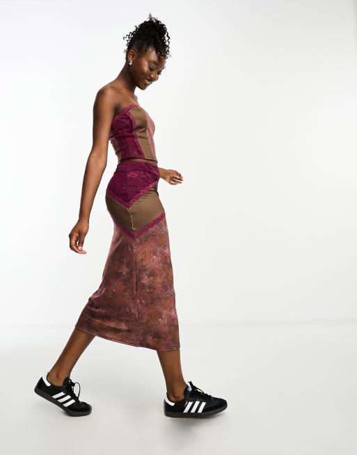 Tammy Girl slinky bodycon midi skirt in mix lace and print co ord