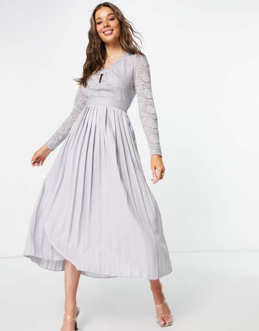 Little Mistress keyhole twist detail lace skater dress with pleated skirt in grey