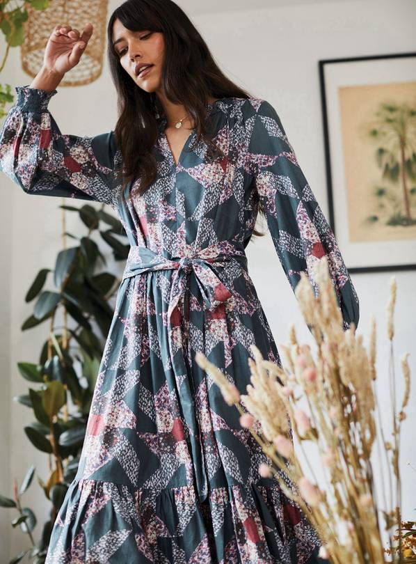 Buy THOUGHT Tarni Hemp Patchwork Midi Dress 8 Dresses Tu