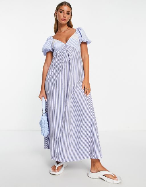 Striped cotton midi clearance dress, ASOS DESIGN mixed stripe cotton midi tea dress clearance