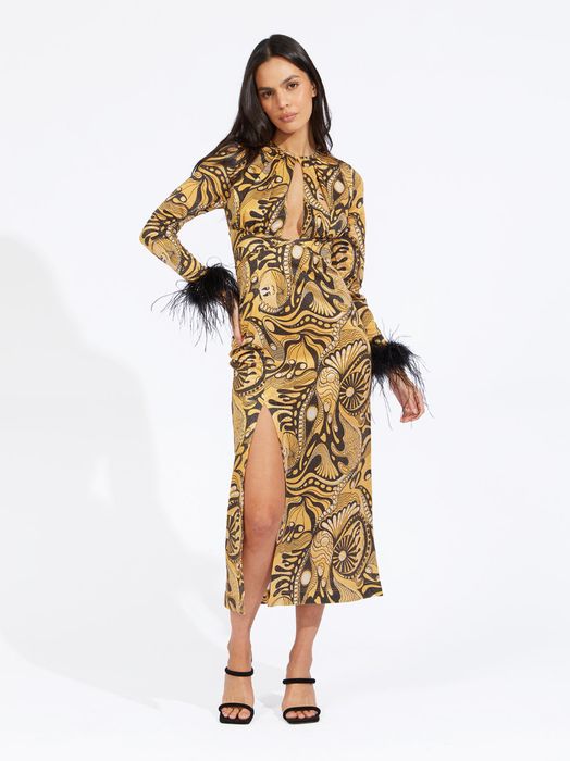 Honeymoon midi dress clearance alice mccall, Alice McCall Gold Dust Feather Midi Dress Grailed clearance