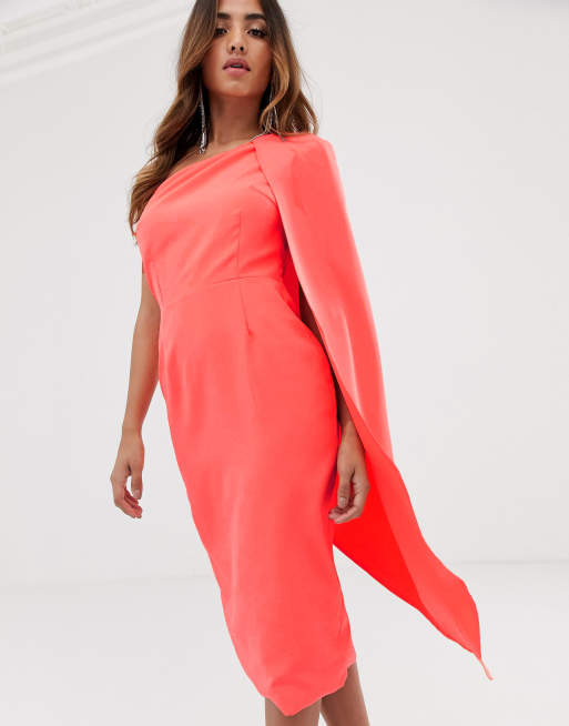 Lavish alice coral clearance dress, Lavish Alice one shoulder cape midi dress in coral clearance