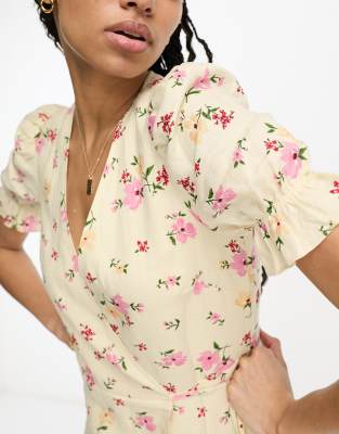 Other stories pink clearance wrap dress, Other Stories exclusive linen midi wrap dress in floral print clearance