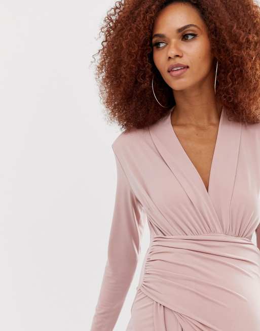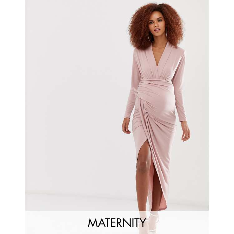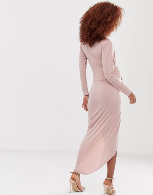 Queen bee wrap front clearance maxi dress in pink