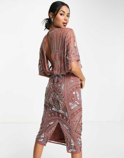 Asos design sexy pencil clearance midi dress with embellished panels, ASOS DESIGN batwing embellished pencil midi dress in stone clearance