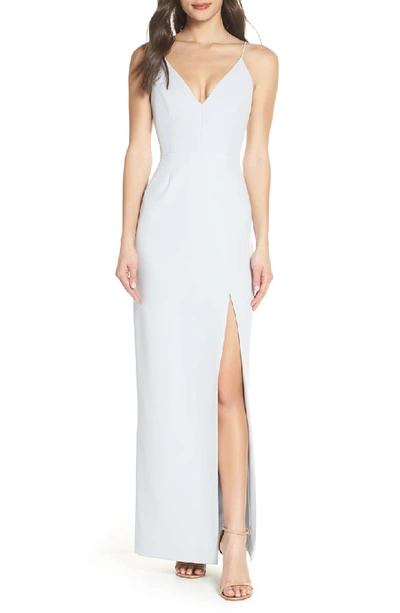 Wayf The Maisle Plunge neck Column Gown With Slit In Ocean Mist