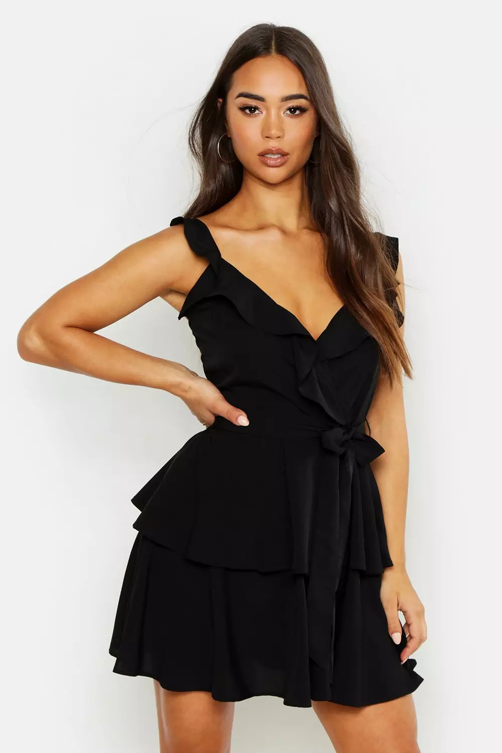 Wrap ruffle mini clearance dress, Woven Wrap Ruffle Mini Dress clearance