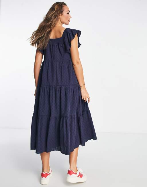 Re sourced Georgette Ruffle Sleeve Tiered Midi Dress in Daisy Meadow