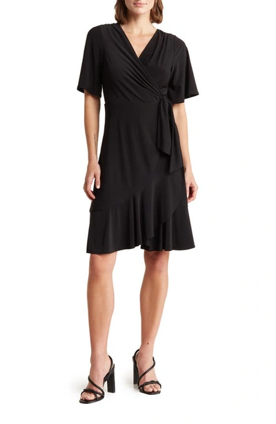 Tash And Sophie Flounce Faux Wrap Dress In Black ModeSens
