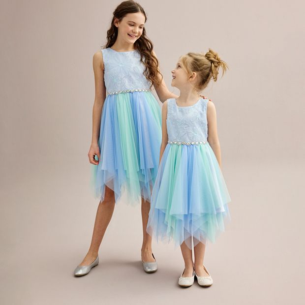 Girls 4 20 Bonnie Jean Fairy Hem Two Tone Dress in Regular Plus Size
