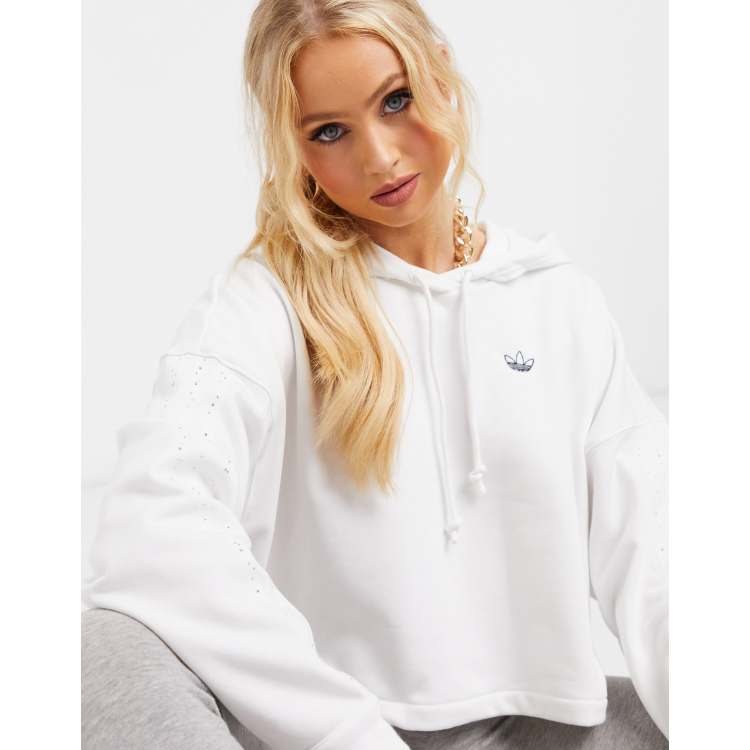 Hoodie clearance adidas white, adidas Originals diamante three stripe cropped hoodie in white ASOS clearance