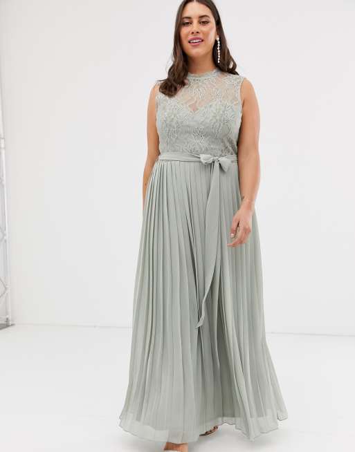Little Mistress Plus lace embroidered top maxi dress in grey ASOS
