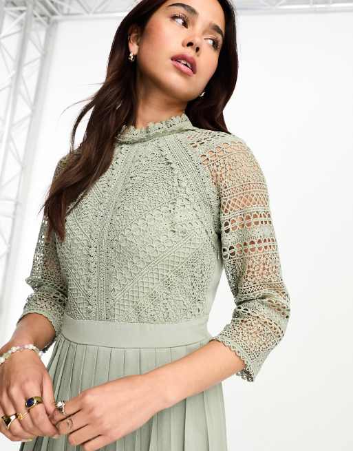Little Mistress Plus lace top twist detail pleated skater midi dress in