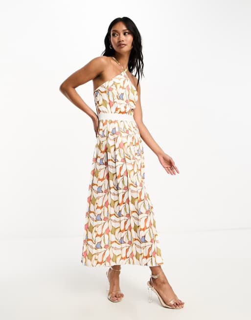 Little Mistress Midaxi kjole med halterneck og plisseret nederdel i print
