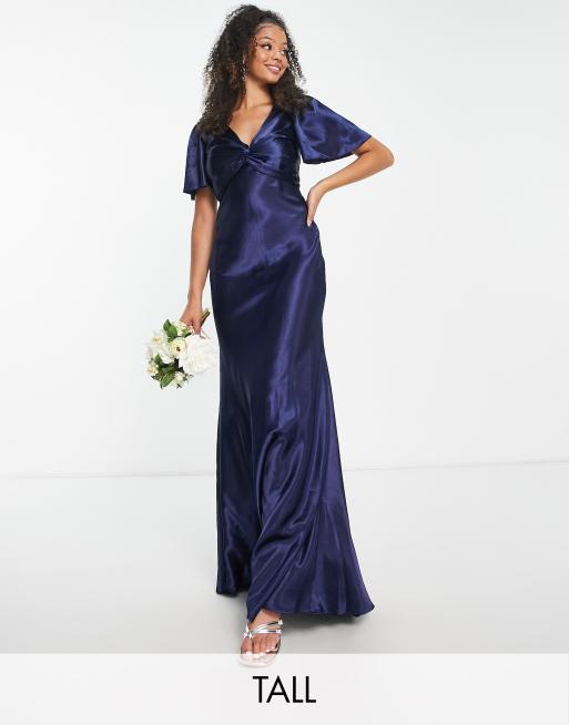 Little Mistress Chiffon Tiered Midi Dress Navy