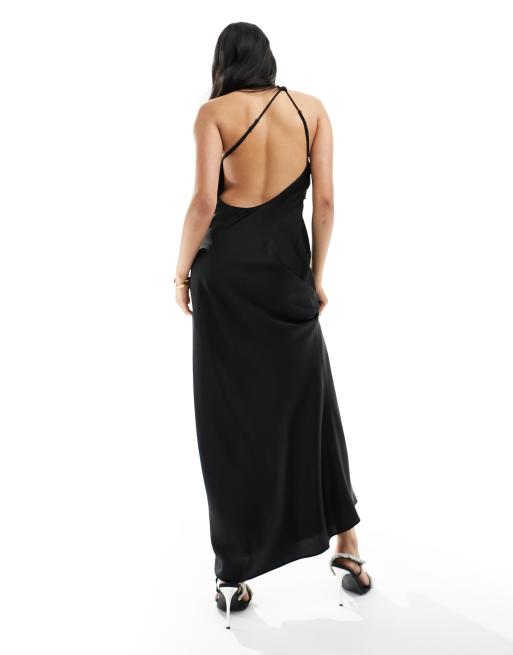 Evening clearance shoulder wrap, ASOS DESIGN satin one shoulder wrap maxi dress with open back in clearance