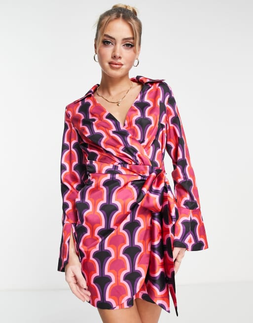 Geo print wrap clearance dress, LTS Tall Women s Geometric Print Midi Wrap Dress eBay clearance