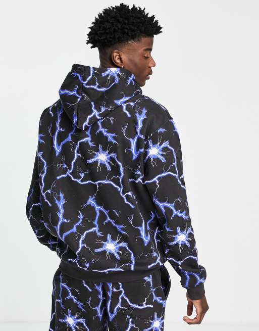 Adidas clearance lightning hoodie, Mennace pullover hoodie in black with all over lightning print clearance