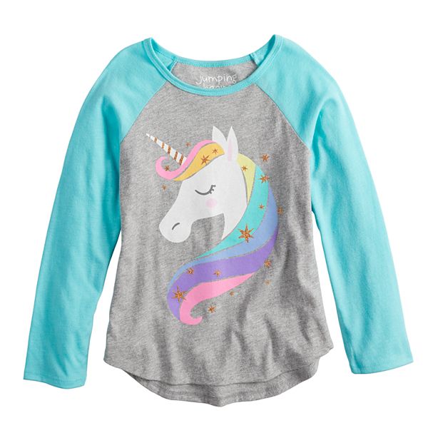 Girls 4 10 Jumping Beans Glittery Unicorn Raglan Tee
