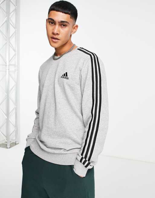 adidas 3 stripe french terry sweatshirt in grey heather ASOS