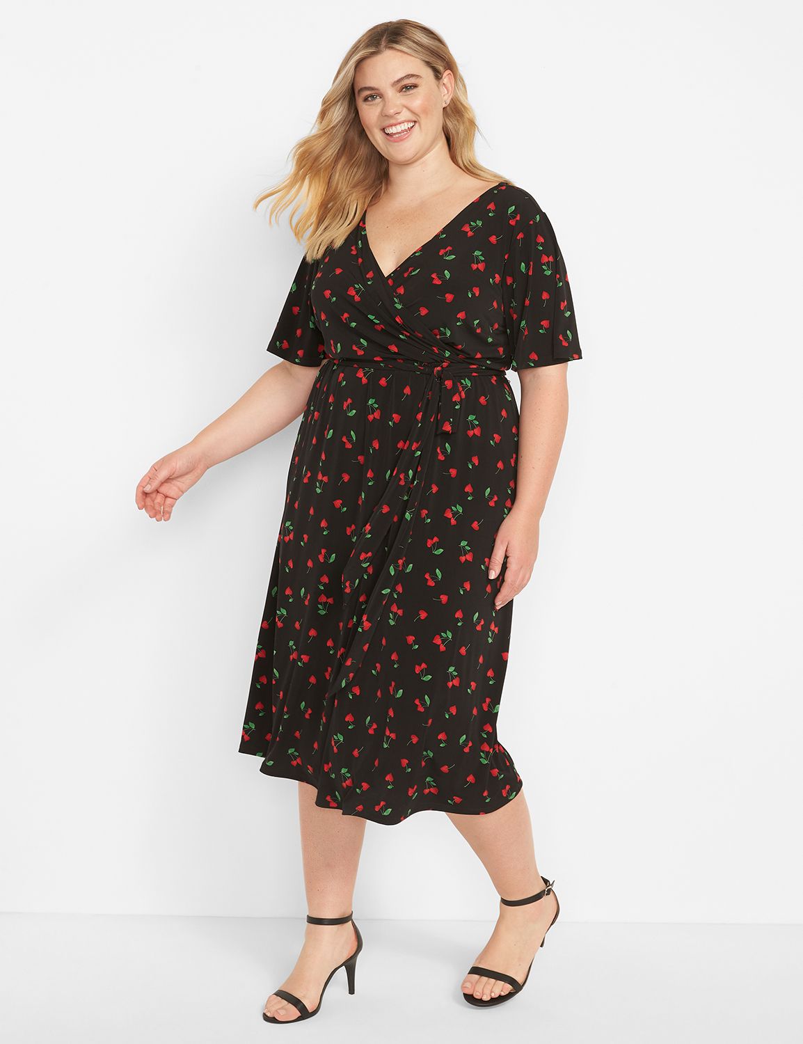 Lane bryant faux clearance wrap dress, Long cuffed sleeve sexy collar Faux LaneBryant clearance