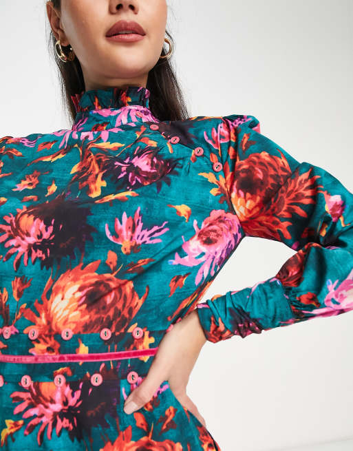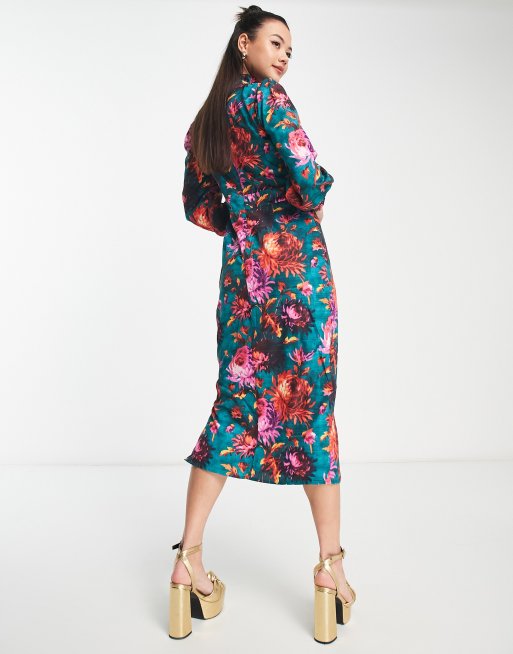 Hope Ivy high neck floral midi dress in emerald