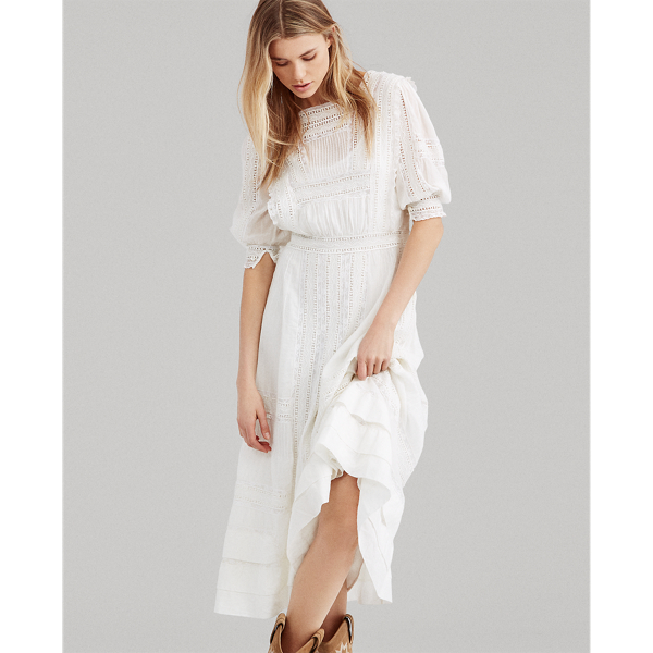 Polo Ralph Lauren Cotton Voile Midi Dress in White Lyst