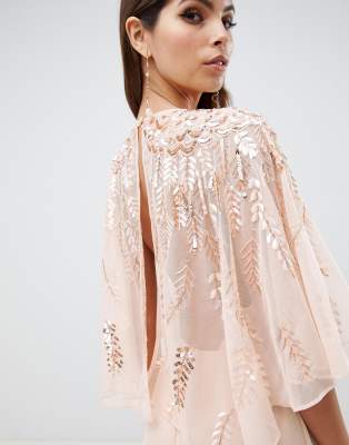 ASOS DESIGN feather embellished cape midi dress ASOS