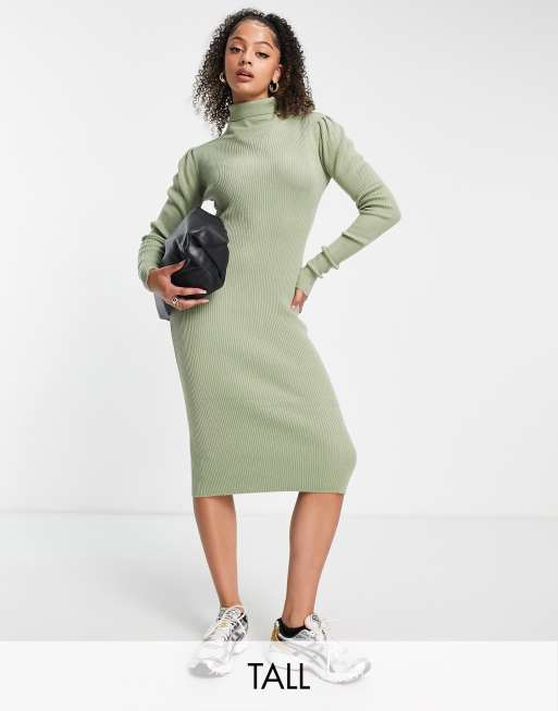 Brave Soul Tall Juliet high neck knitted jumper dress in sage