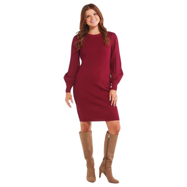 Womens Nina Leonard Long Pleat Bubble Sleeve Sweater Dress