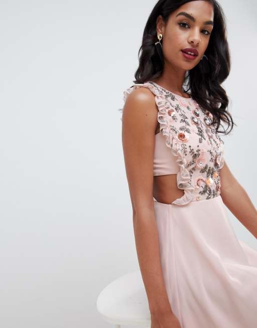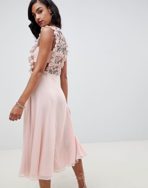 Asos design midi dress with clearance pinny bodice in 3d floral embellishment