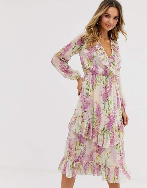 River island midi dress with clearance ruffle detail in pink floral, Chi Chi London Sleeveless Floral Print Midi Dress Pink very clearance