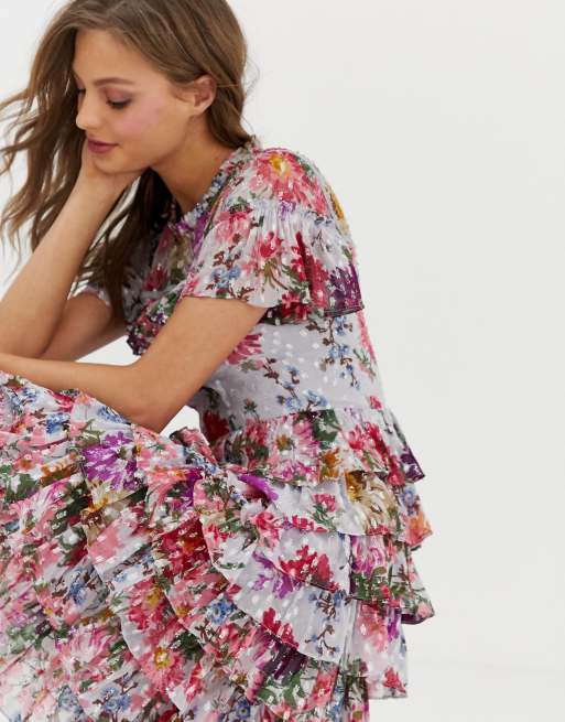 Needle & thread ruffle midi clearance dress in allover floral print, Needle Thread Cold Shoulder Maxi Dresses for Women Mercari clearance