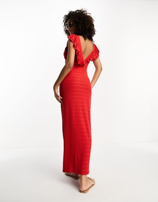 Embroidered ruffle sleeve clearance midi dress, Lulus By The Vineyard Red Embroidered Ruffled Midi Dress Midi clearance