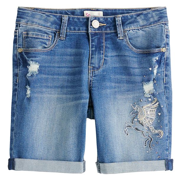 Girls 6 20 SO Favorite Raw Hem Denim Bermuda Shorts in Regular Plus