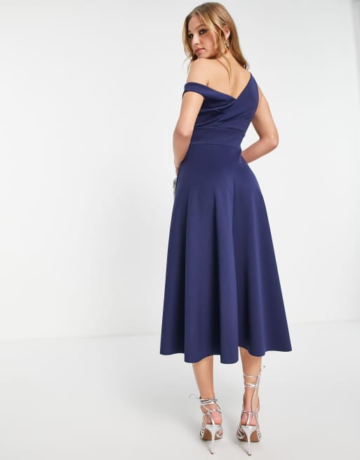 ASOS WEDDING Scuba Off The Shoulder Midi Prom Dress