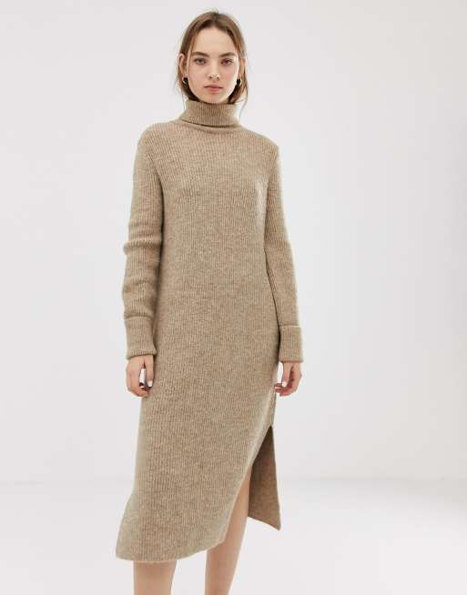 Asos design jumper dress in clearance midi length with side splits, ASOS DESIGN oversized knitted midi dress with crew neck and seam detail in camel clearance