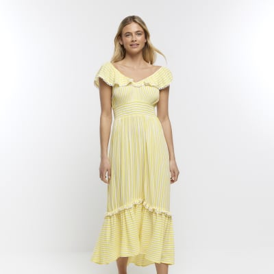 Yellow striped midi clearance dress, Riley Cotton Striped Midi Dress clearance