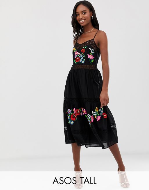 ASOS DESIGN Tall cami trapeze embroidered midi dress ASOS