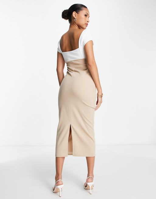 ASOS DESIGN cap sleeve midi dress in cream and camel colour block