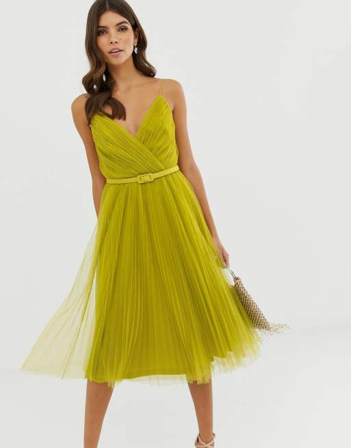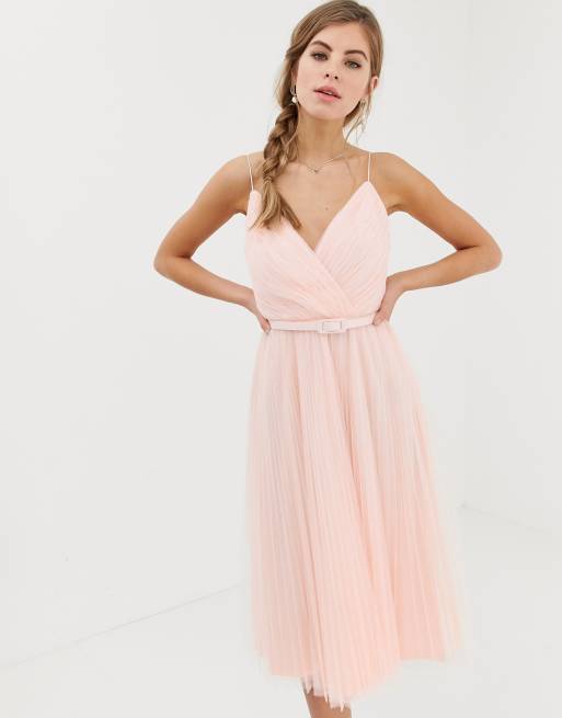 ASOS DESIGN belted pleated tulle cami midi dress ASOS