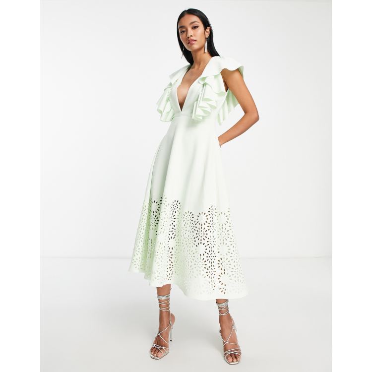 ASOS DESIGN plunge neck cutwork midi prom dress in mint