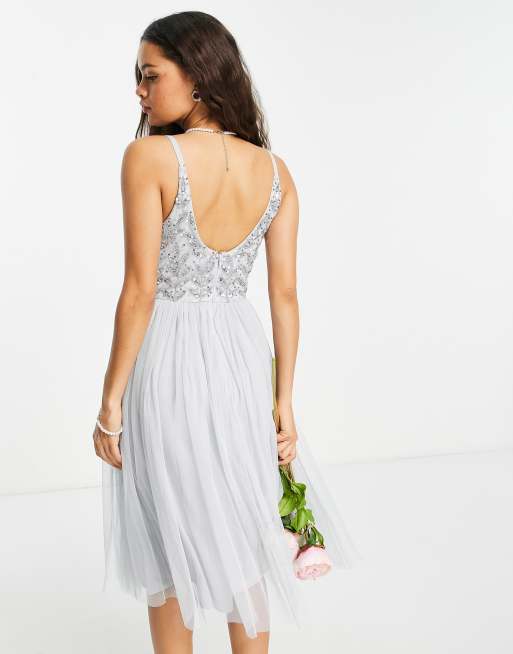 Maya petite v neck sleeveless clearance midi dress, Maya Petite embellished top midi dress in pale blue clearance
