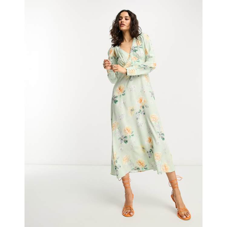 Button detail midi clearance dress, Rust Floral Print Button Satin Midi Slip Dress PrettyLittleThing clearance