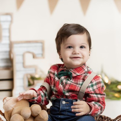 Baby Boys Holiday Plaid Suspender Top Bottom Set Cat Jack