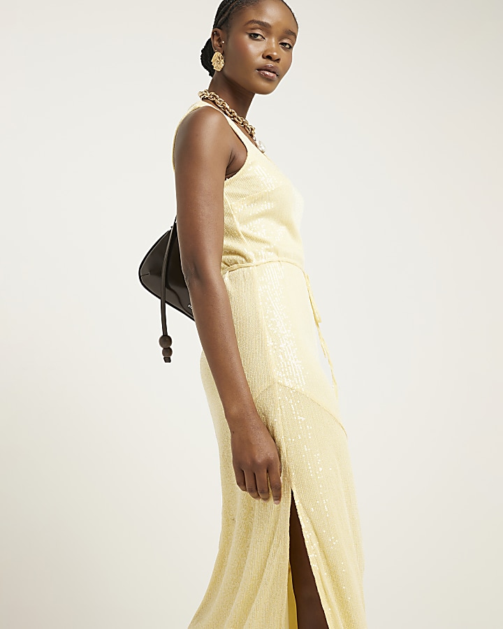 River island midi dress clearance with belt detail in yellow, Yellow Dresses Yellow Dress Yellow Sundress River Island clearance